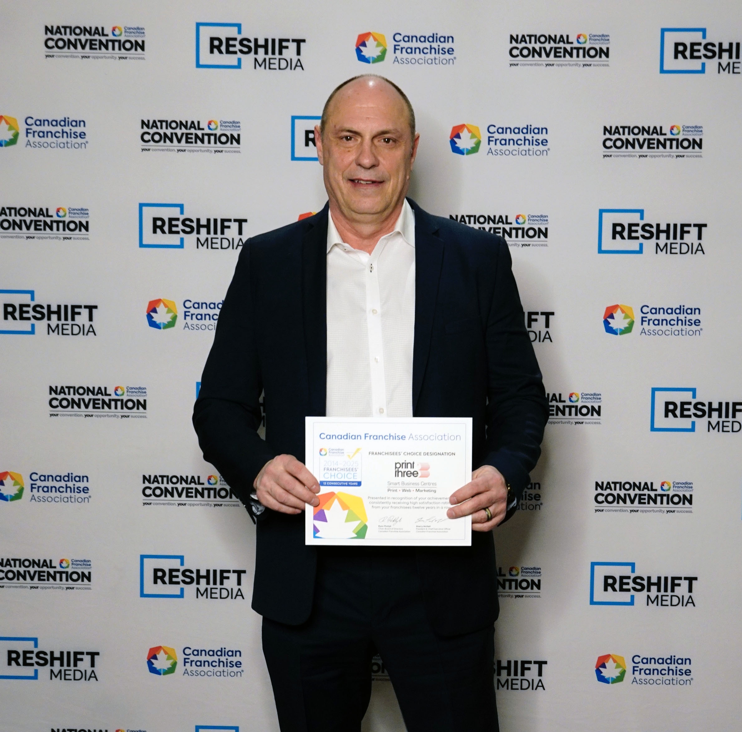 Markham Ontario, April 15, 2025 – Print Three Franchising Corp was named as a recipient of the Franchisees’ Choice designation on April 7, 2025, during the Awards Gala at the 2025 Canadian Franchise Association (CFA) National Convention in Niagara Falls, Ontario. This is the 15th year for the Franchisees’ Choice Designation Program, and Print Three Franchising Corp was honoured for its accomplishment in receiving this designation.